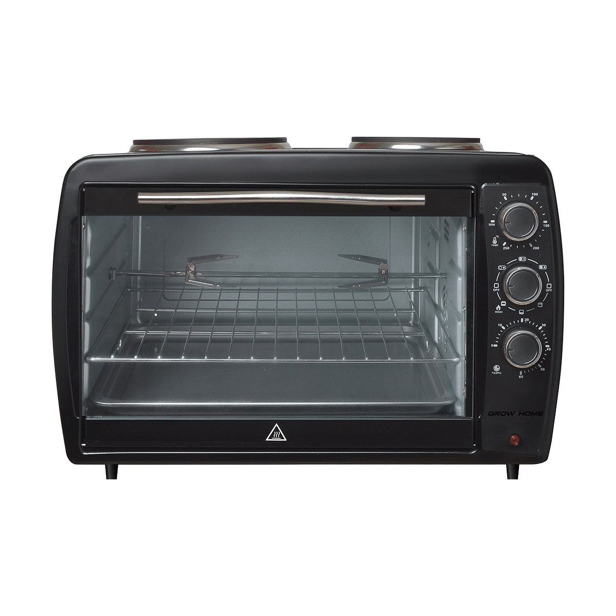 El horno eléctrico GH-45A de 45 litros ofrece una solución versátil para cocinar distintas preparaciones en el hogar, combinando horno y anafes superiores en un solo equipo.